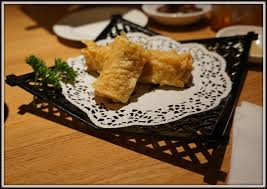 - Bagi dan letakkan tumis tahu pada tiap lembaran kulit tahu, ikat dengan benang katun. Goreng dengan api sedang sampai kulit kecoklatan. Hidangkan dengan sambel botol.
